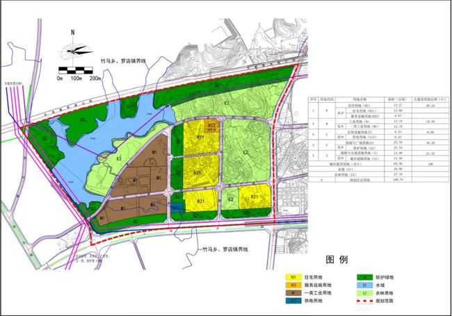 (二)发展规模:规划总用地面积109.73公顷;规划城市建设用地65.56公顷,占规划总用地59.75%。规划可容纳人口规模0.56万人。