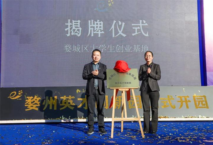开园仪式上,蔡艳等领导一同上台倒金沙,共同见证婺州英才创新园开园。园区负责人席璟彤介绍了园区基本情况;市委宣传部副部长、社科联程建金,区委常委、组织部长徐妙芳分别为婺州文化影视时尚基地、婺城区大学生创业基地揭牌。